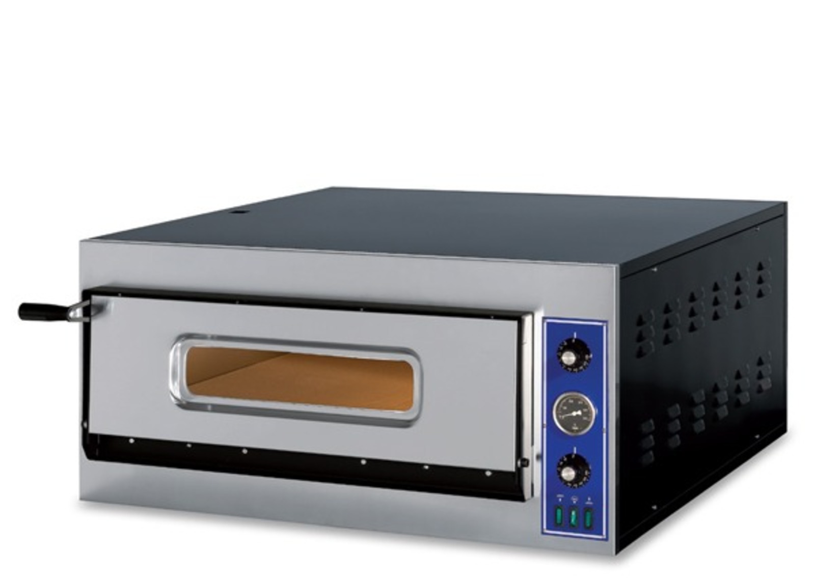 Ο GGF E-START 6 είναι ένας επαγγελματικός ηλεκτρικός φούρνος πίτσας, ιδανικός για πιτσαρίες, snack bar, εστιατόρια ή μικρές μονάδες παραγωγής. Με δυνατότητα ψησίματος έως 6 πίτσες Ø33 cm ταυτόχρονα, προσφέρει ομοιόμορφο και άψογο ψήσιμο χάρη στην πυρόπλακα υψηλής ποιότητας και την ανεξάρτητη ρύθμιση άνω & κάτω αντίστασης. Κατασκευασμένος εξολοκλήρου στην Ιταλία, συνδυάζει αξιοπιστία, αντοχή και οικονομία.