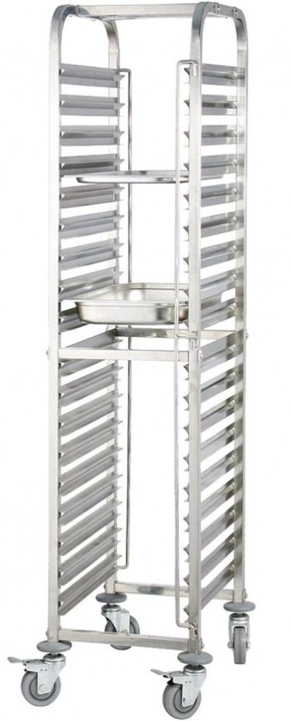 Ανοξείδωτο τρόλεϊ δίσκων GN 2/1 για μεταφορά φαγητού ή για προετοιμασία φαγητού σε χώρους εστίασης.