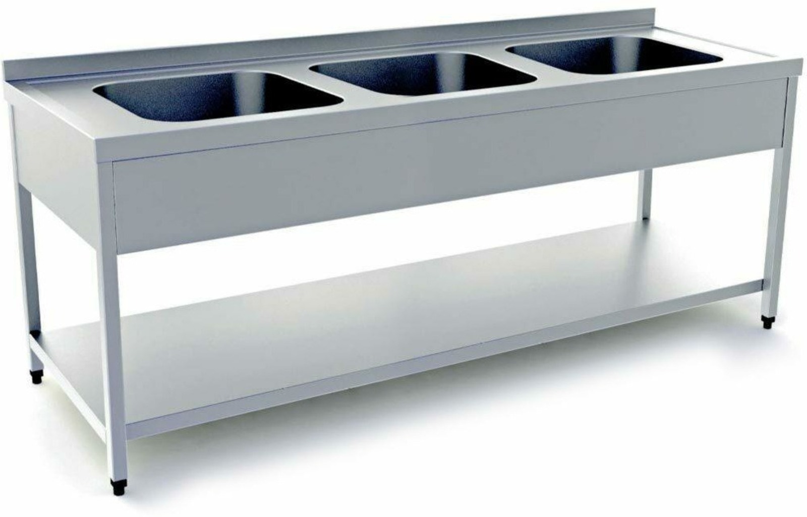 Λάντζα ανοικτή με 3 γούρνες 40Χ40 ή 50Χ50. Δεν περιλαμβάνει βρύση ή καταιωνιστήρα. Είναι κατασκευασμένη από ανοξείδωτο χάλυβα ΑΙSI 304.