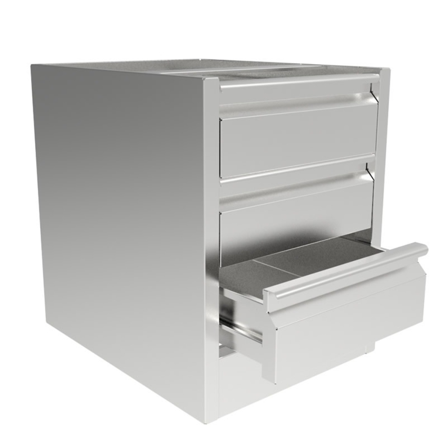 Συρταριέρα συναρμολογούμενων τραπέζιων εργασίας από ανοξείδωτο ατσάλι AISI 304.